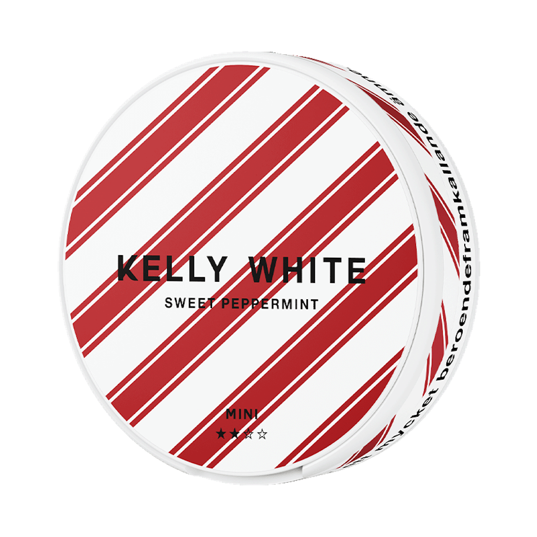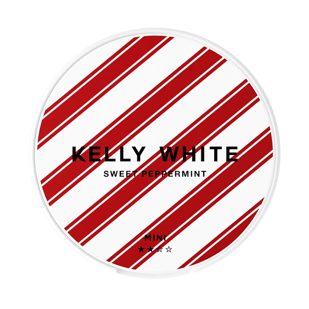 Le sachet de nicotine Kelly White Sweet Peppermint Mini est un sachet de Noël. Le contenu est composé de fibres végétales, d'arômes et de nicotine ajoutée. L'arôme de la portion est lapeppermint sweet . Le sachet a un format mini et un contenu humide alors que l'extérieur du sachet est sec.