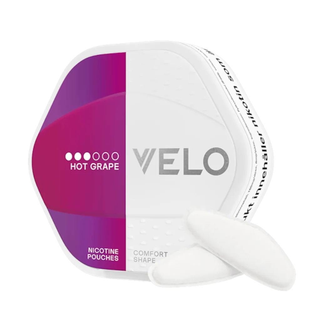 VELO Shift Hot Grape VELO uno snus bianco snus slim con Grape e classificato come forte. Ogni confezione contiene 20 porzioni e il prodotto è snus bianco.
