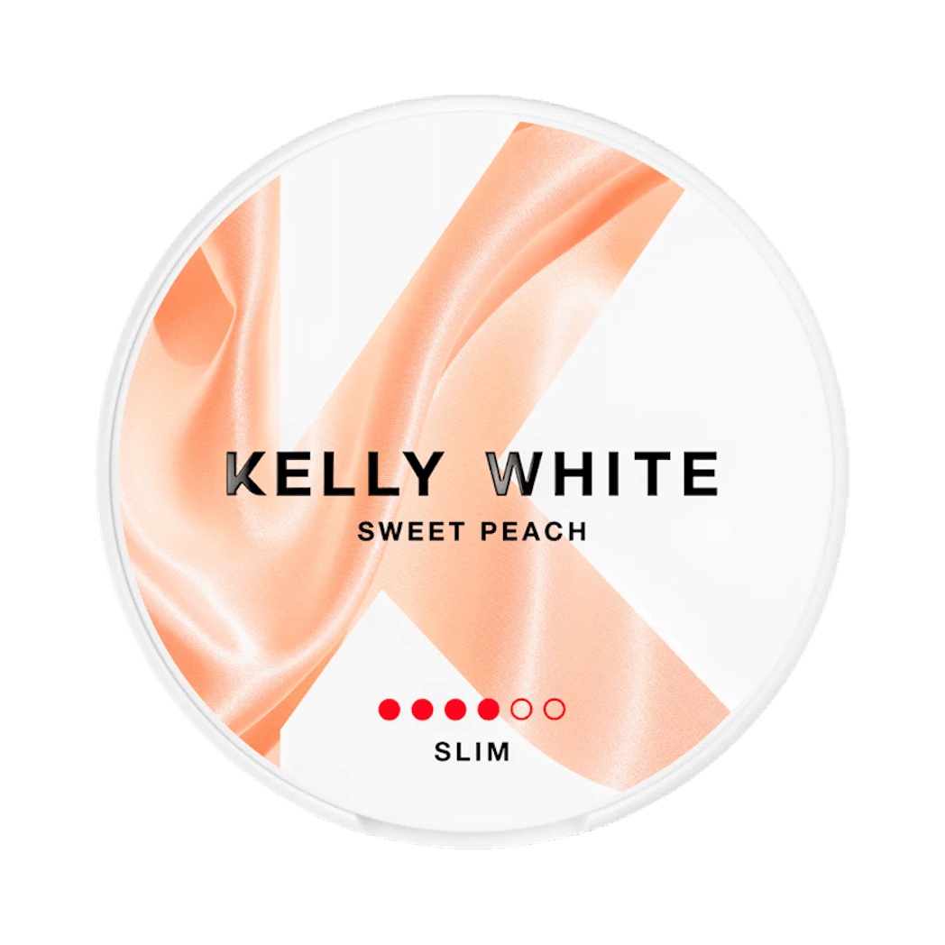 Kelly White Sweet Peach Slim Strong is a highly respected type of all-white pouch. Its dry and revitalizing sweet peach flavor is a notable attribute.