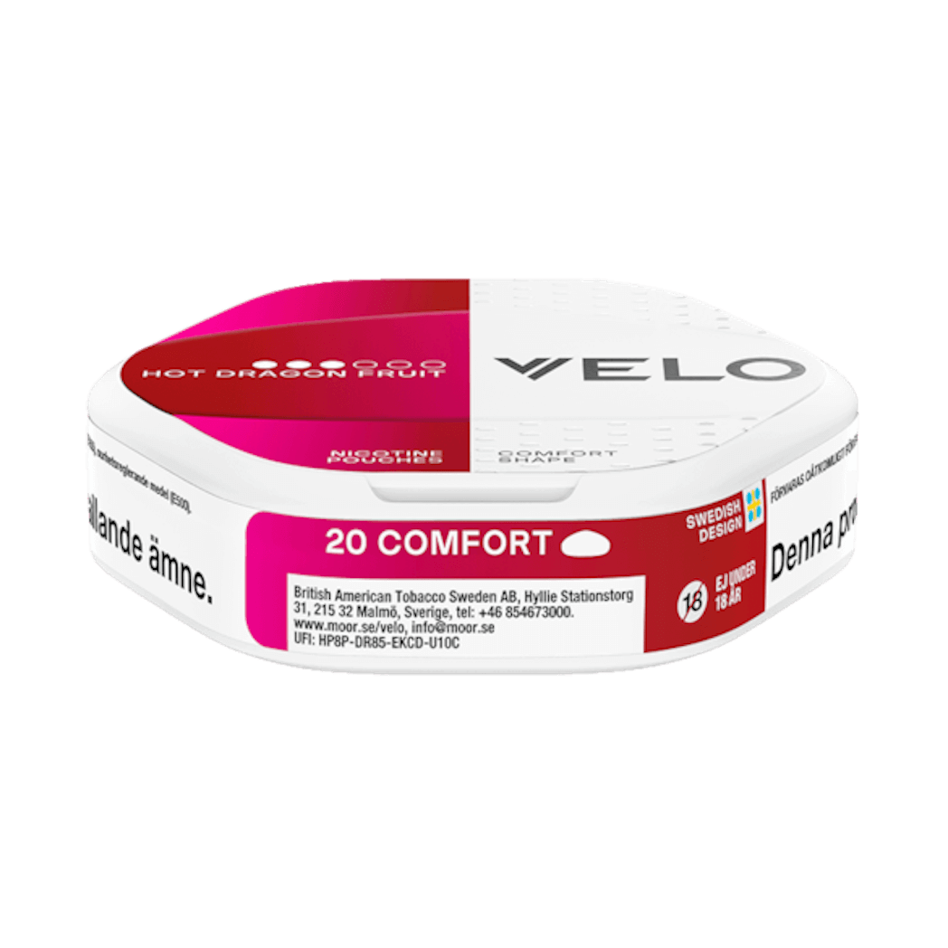 VELO VELO 시프트 Hot 드래곤프루트는 slim 형태의 화이트 snus 드래곤프루트 향이 나며 진한 맛으로 분류됩니다. 각 캔에는 20인분이 들어 있으며, 이 제품은 화이트 snus 대체품입니다.