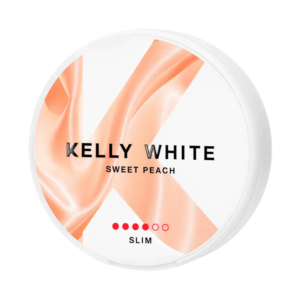 Kelly White Peach Slim Strong nikotin poşeti, şeftali aromalı bir poşettir. İçeriği bitki lifi, aroma ve ilave nikotinden oluşur. Aroma, tatlı şeftali aromasıdır. Poşet mini boyuttadır ve içeriği nemliyken poşetin dışı kurudur.